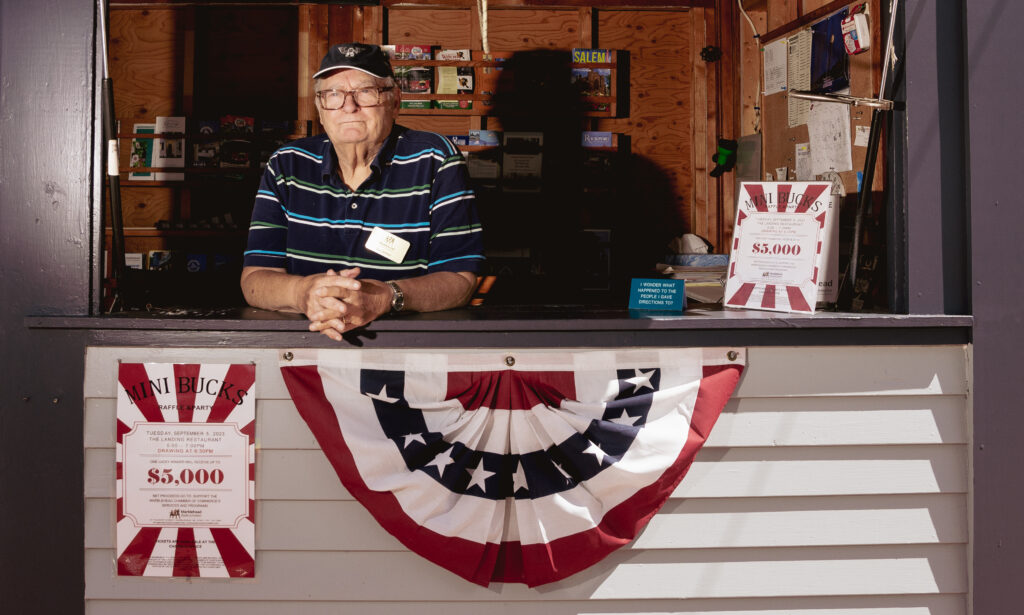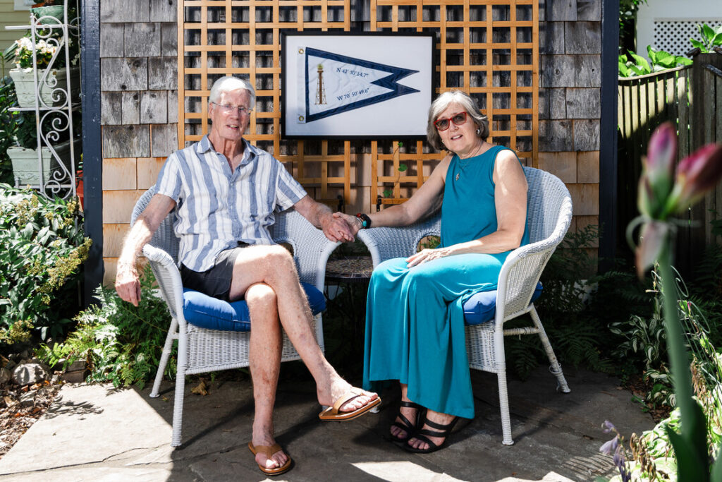 Bill and Nancy Davidge created a unique burgee for the town of Marblehead, featuring the Chandler Hovey Lighthouse and the town’s latitude and longitude, which is now popular among boaters and town fans alike.